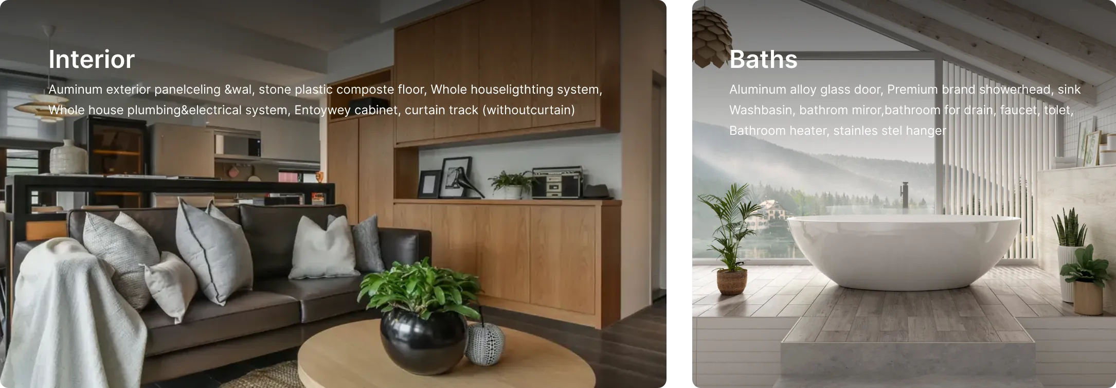 Fine finishing, shower room with artificial stone finish and partition, toilet, sink, smart mirror, sink cabinet, curtain mechanism, thermal insulation, waterproofing, wind protection, smart lock, internal and external lighting, electricity wiring, sewerage, water treatment.